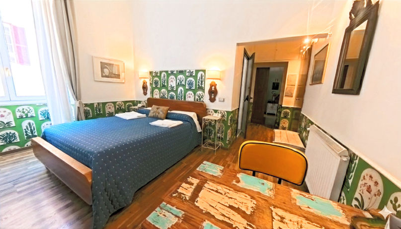 Das Doppelzimmer „Verda“ ist besonders bei Paaren beliebt. Es ist geräumig und hell und bietet einen herrlichen Blick auf die Via Castelfidardo. Die hohen Decken fallen sofort ins Auge. Auch die elegante Einrichtung verleiht dem Zimmer ein romantisches Ambiente.